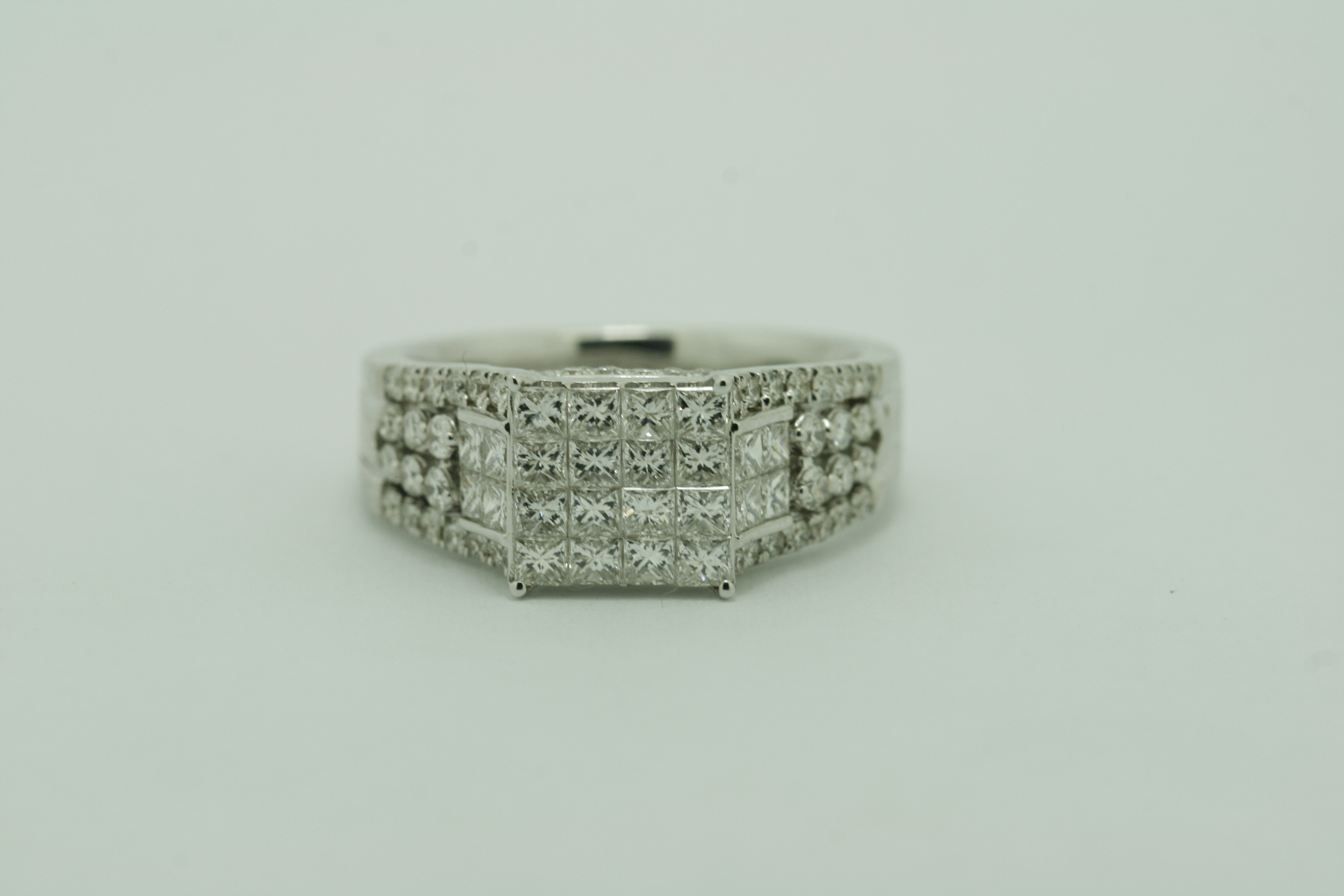 18 KARAT WHITE GOLD FANNED OUT DIAMOND RING