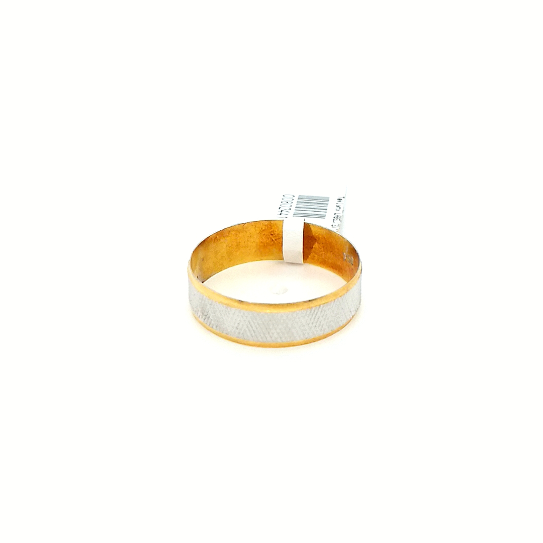 Wrap around half cubic zirconia stones on an 18 karat two tone ring.