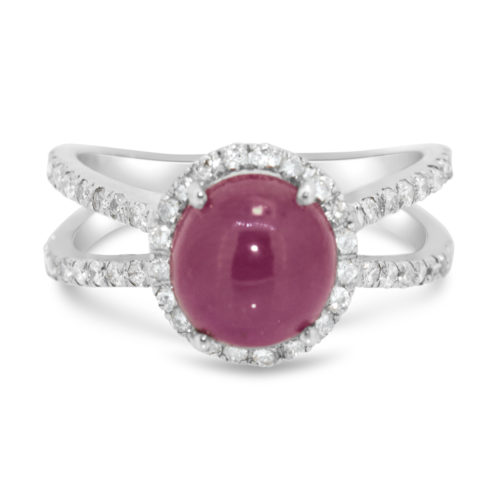 18 KARAT WHITE GOLD DIAMOND RING WITH AN EXQUISITE CABOCHON RUBY