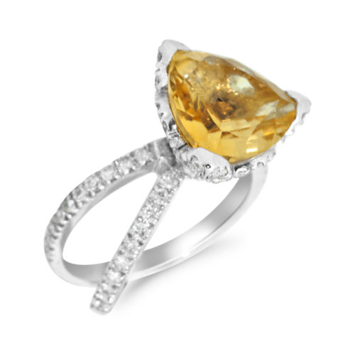 18 KARAT WHITE GOLD DIAMOND WHITE CITRINE STONE WEDDING RING ENGAGEMENT