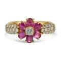 18 KARAT YELLOW GOLD WEDDING RING DIAMOND WITH RUBY STONE