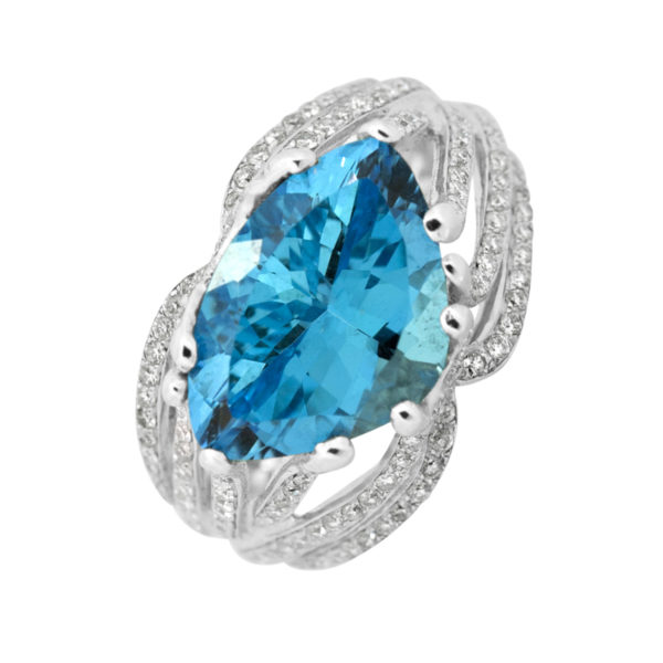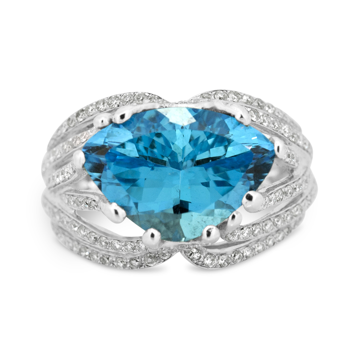 18 KARAT WHITE GOLD WEDDING RING DIAMOND WITH BLUE TOPAZ 7.12 STONE