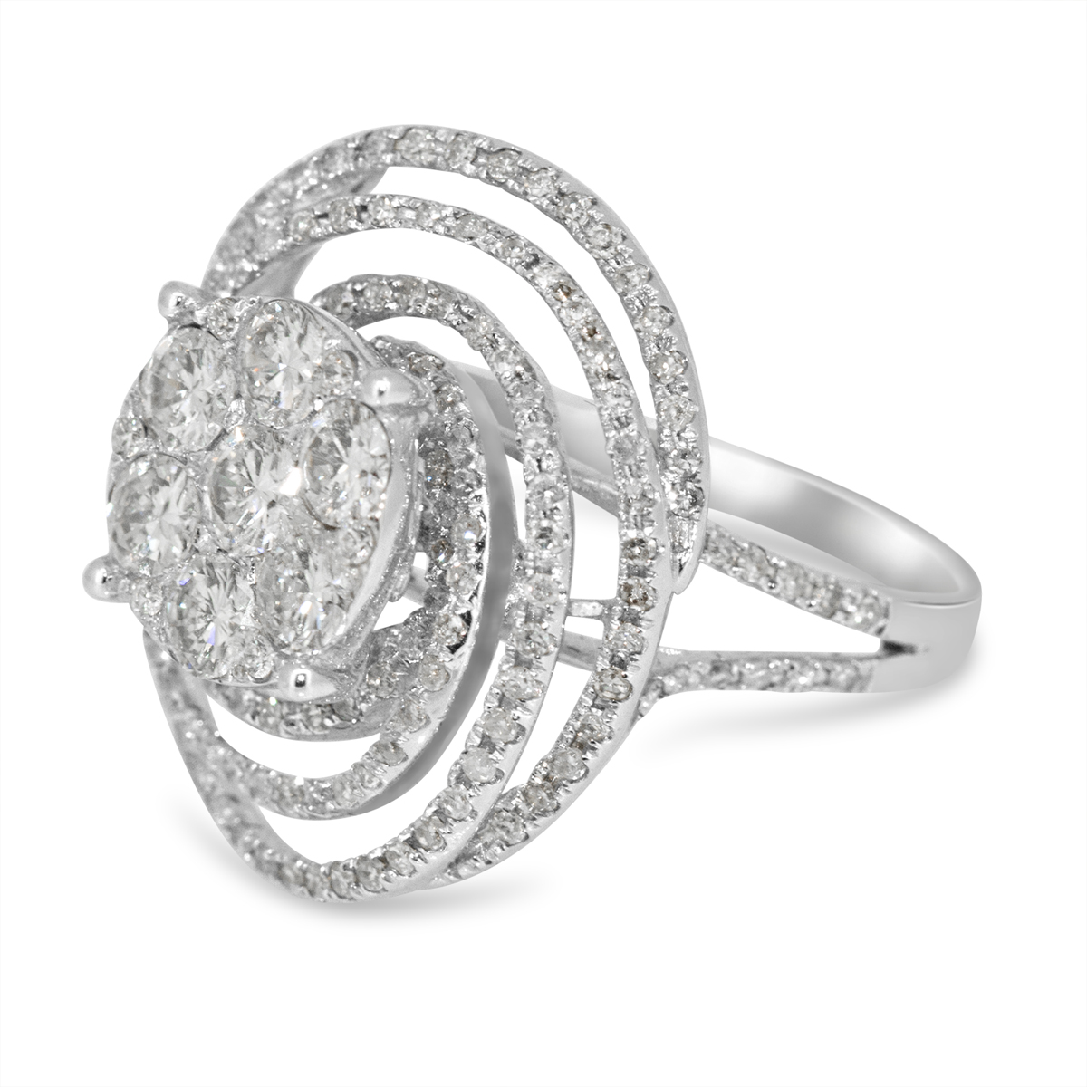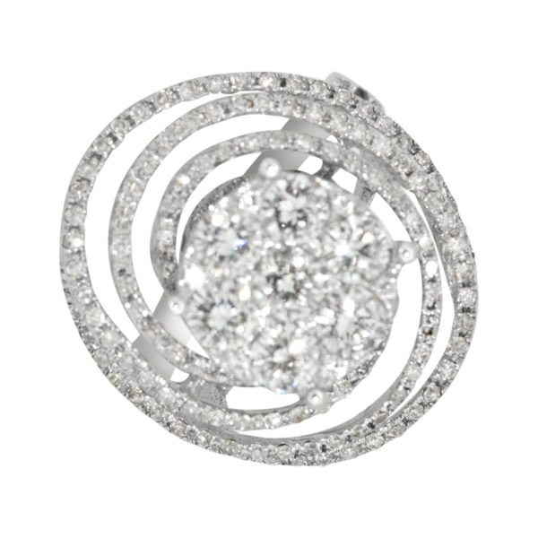 18 KARAT WHITE GOLD PAVE SWIRL DIAMOND RING