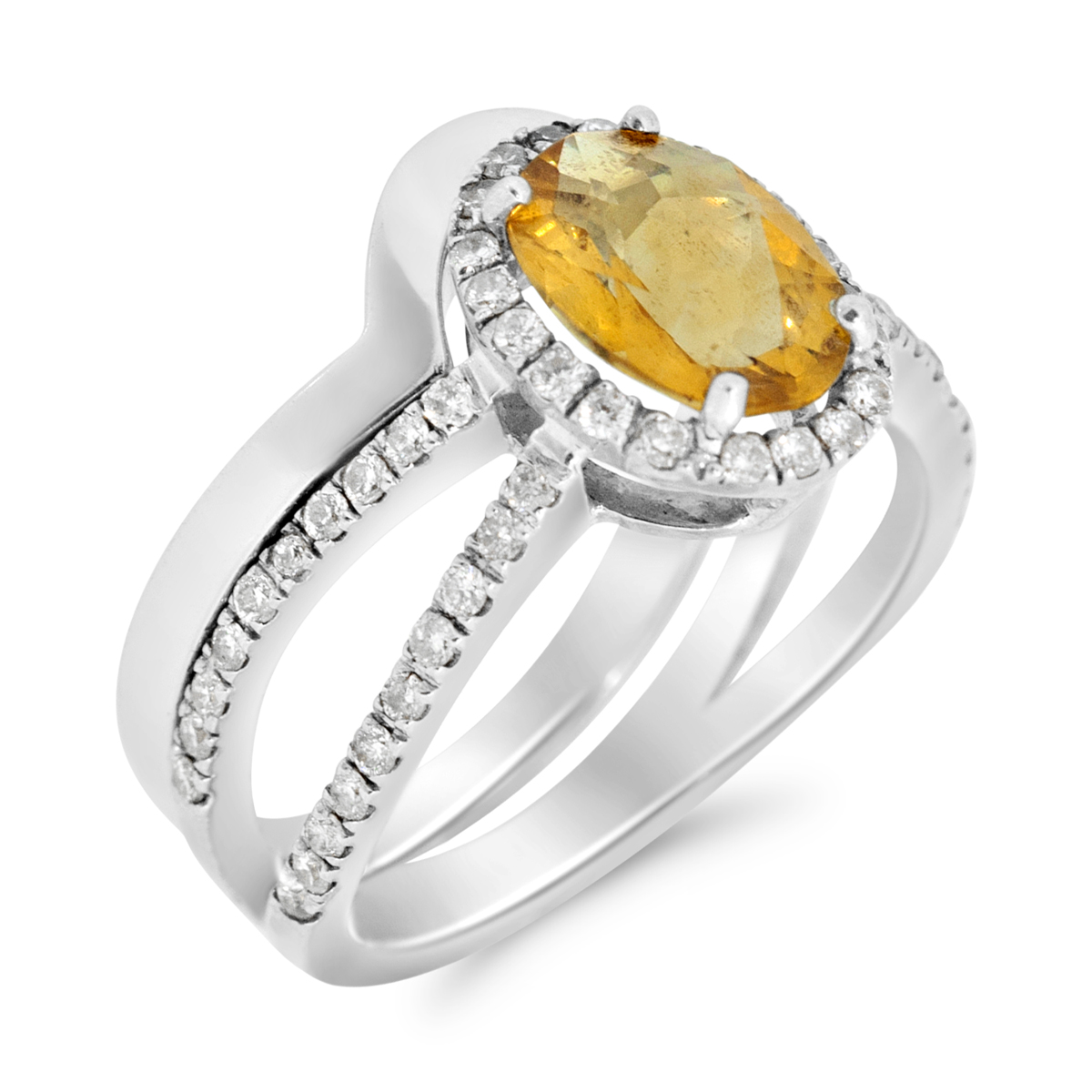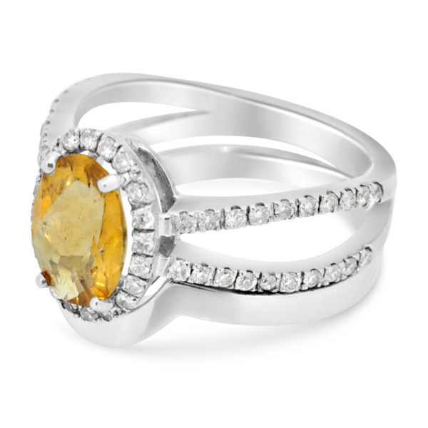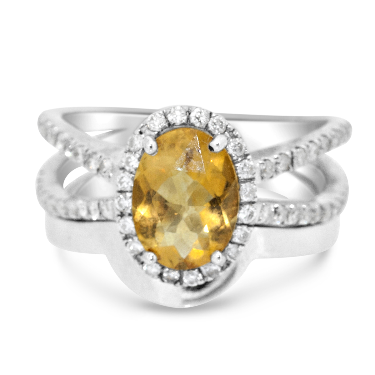 18 KARAT WHITE GOLD DIAMOND RING WITH AN OVAL 1.91CT CITRINE STONE