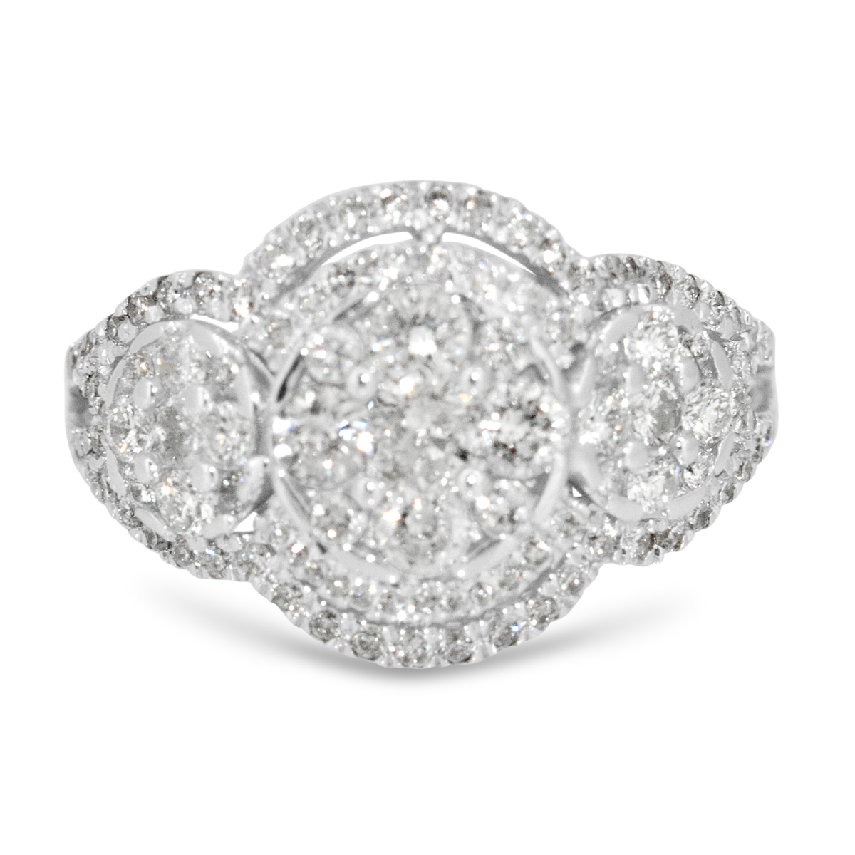 18 KARAT WHITE GOLD PAVE CLUSTER DIAMOND RING