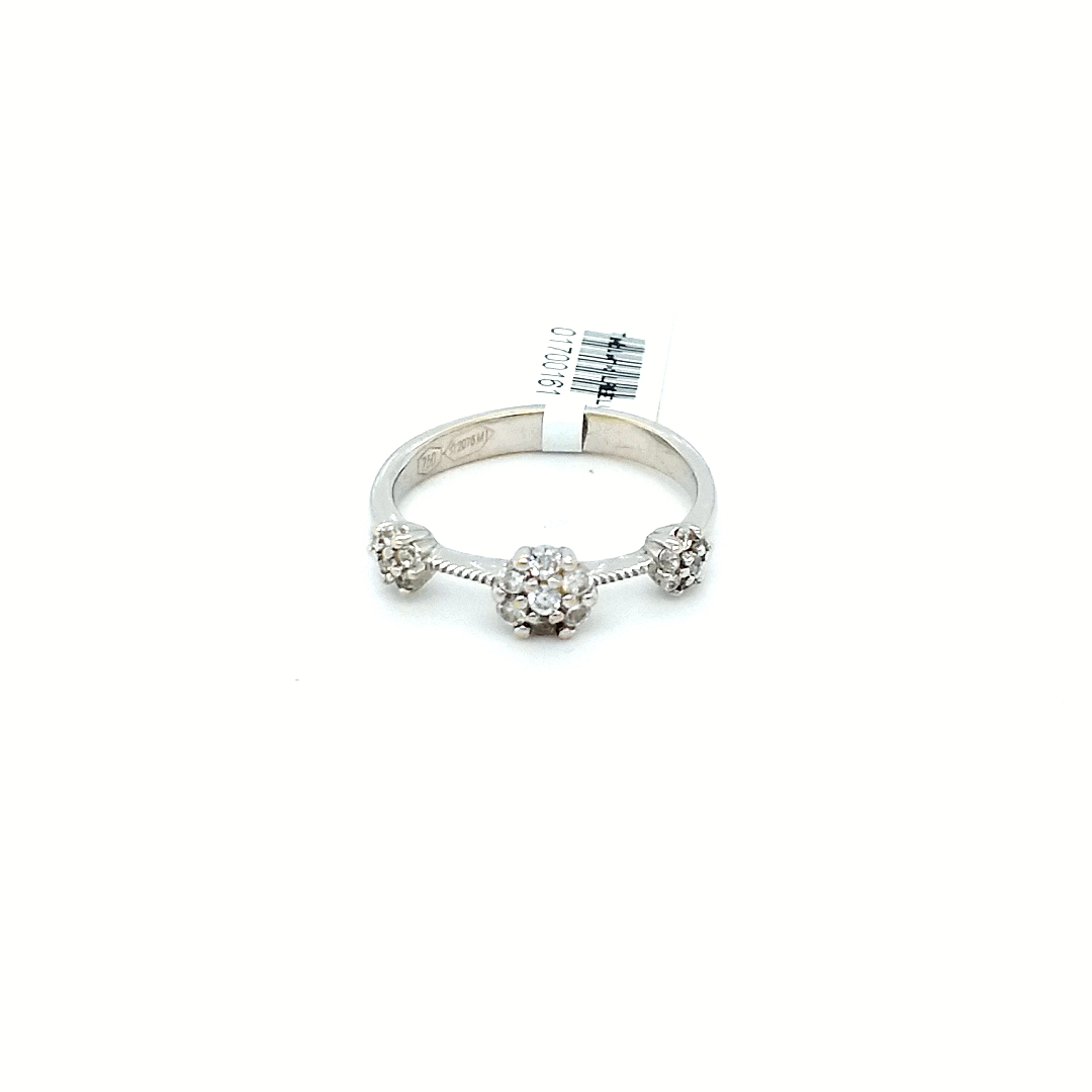 18K WHITE GOLD 3 FLORAL PAVE CLUSTER DESIGN WEDDING RING ENGAGEMENT