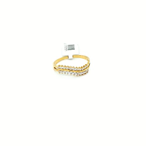 Wrap around half cubic zirconia stones on an 18 karat two tone ring.