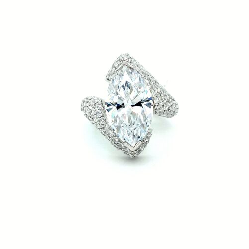 Marquise center hug setting with cubic zirconia stones on an 18 karat white gold ring. Note: This ring fits an Italian size 16, due to the gap underneath the ring.