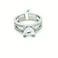 Princesss cut cathedral design with cubic zirconia stones on an 18 karat gold ring.