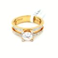 Pave-set gold zirconia stones 4 prongs Brillant gold zirconia center stones on an 18 karat gold ring.