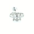 Pave-set size florals twin half white zirconia center stones on an 18 karat white gold ring.