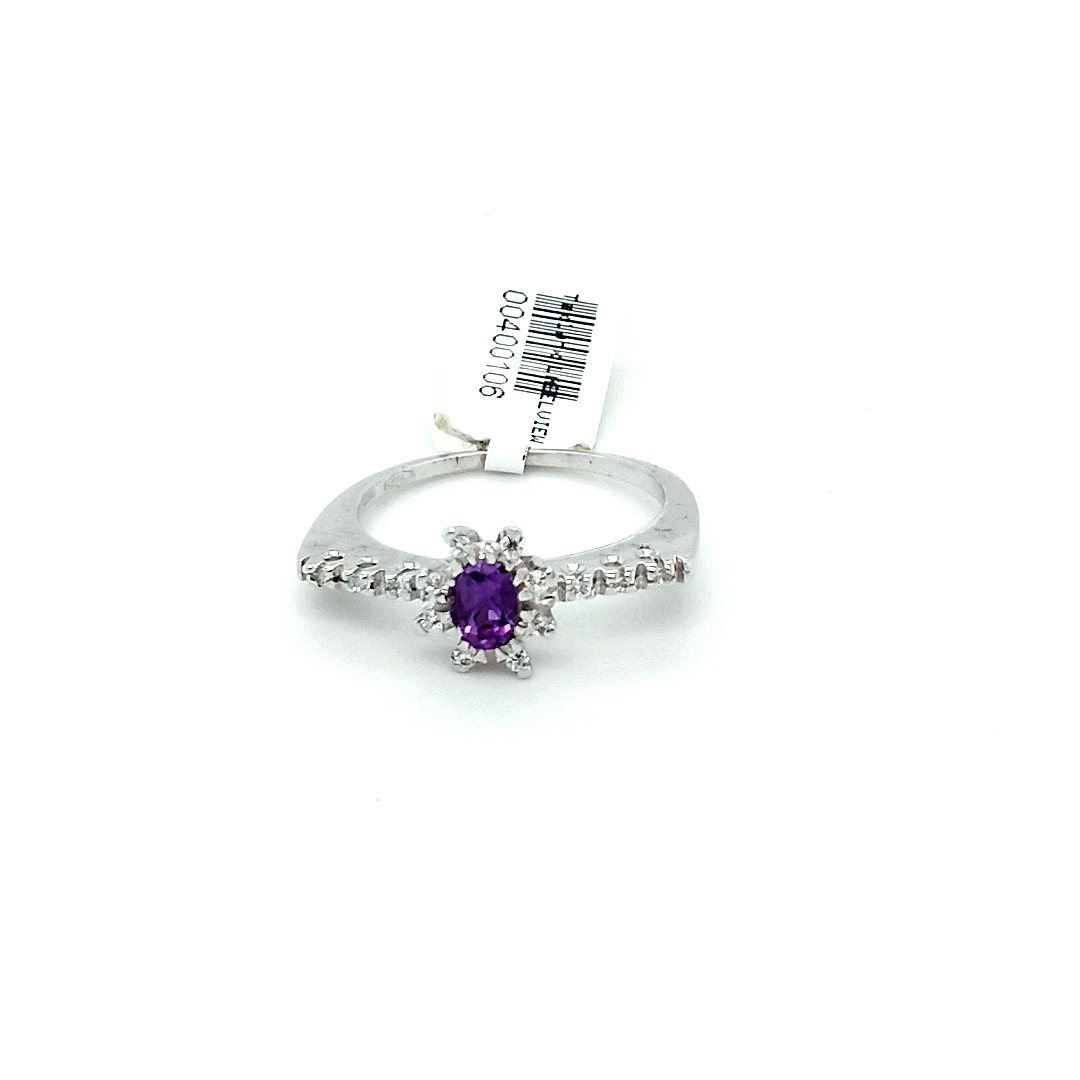 18K WHITE GOLD FLOWER STONE RING WITH AMETHYST STONE