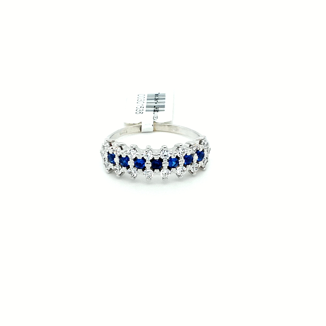 Sapphire-CZ cubic zirconia brillant point stones on an 18 karat white gold ring.