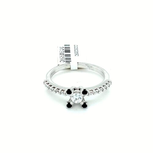 Convex design with cubic zirconia stones placed on one side on an 18 karat white gold top and yellow gold base ring.