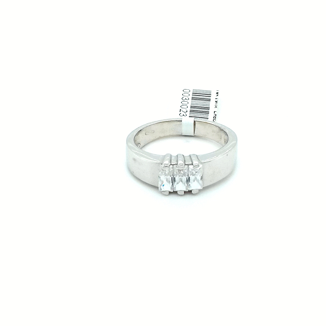 18K WHITE GOLD WITH 3 RECTANGULAR STONES ON WHITE GOLD