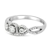 Crown half eternity cubic zirconia center stones on an 18 karat white gold ring.