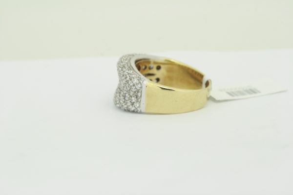 Pave setting top cluster cubic zirconia half-eternity 18 karat white gold top and yellow gold bottom(2 tone) ring.