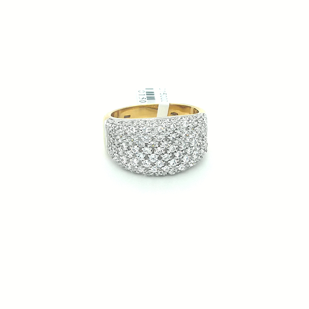 Wrap around half cubic zirconia stones on an 18 karat two tone ring.