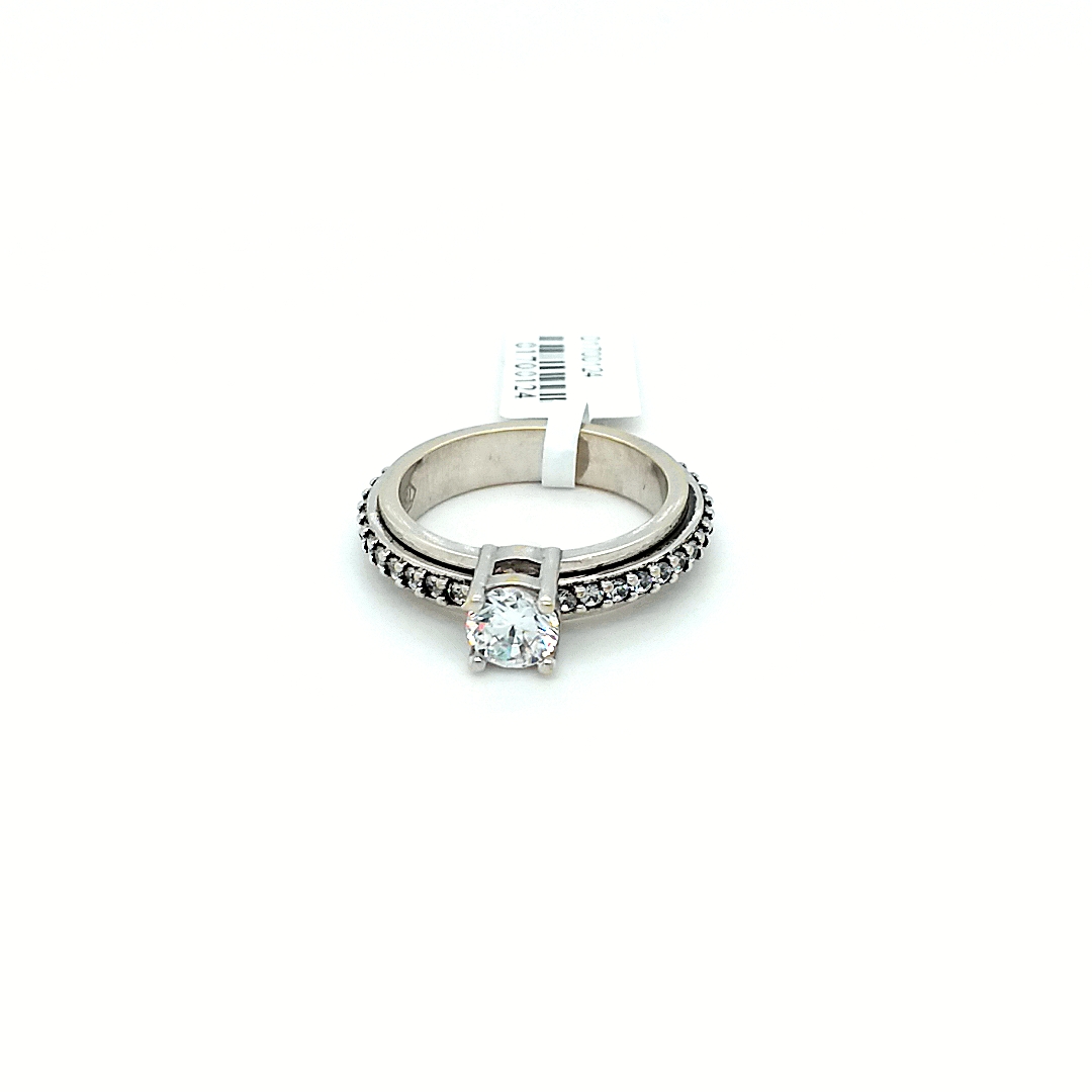 18K WHITE GOLD WITH WHITE SOLIATRE WITH TURNING STONE ROUND